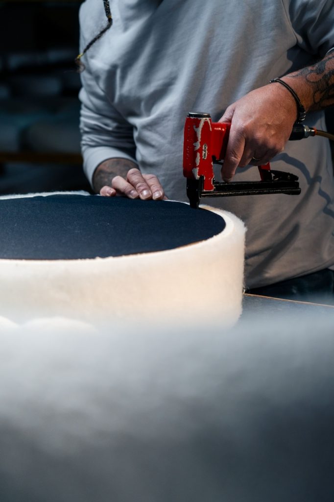 Cette démarche créative prend forme grâce au travail minutieux de nombreuses femmes et de nombreux hommes, chacun expert dans son domaine : bureau d’études, menuisiers, ferronniers, tapissiers… Tous se rejoignent dans une même quête d’excellence. Les échanges constants avec ces artisans permettent d’atteindre la qualité visée. Les étapes qui suivent cette première vision — développement du produit, définition des détails d’assemblage, réalisation des prototypes, ajustements et essais jusqu’à la production — sont aussi essentielles que le premier croquis.